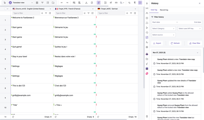 View update history (by who, and when) by clicking on the icon on the right-side panel.